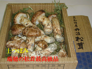 丹波瑞穂、和知産だけの特選松茸を使用します。